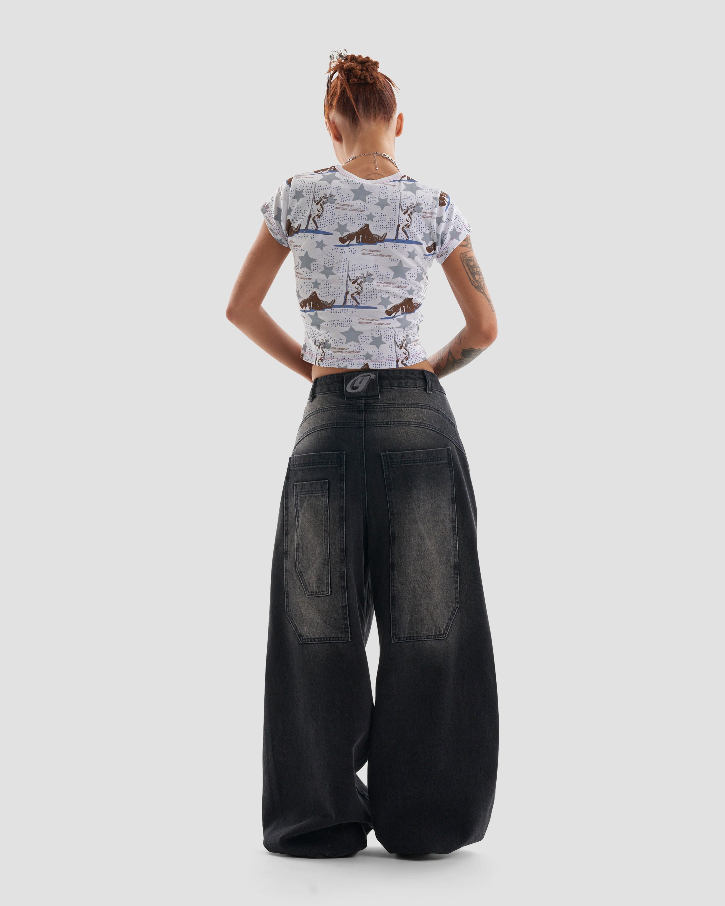 This is the Stripped crop fit baby tee in multicolour. Go full on 90s with this crop fit baby t-shirt with all over stripper print graphic in multicolour. It's the perfect tee to show off your wildest self. Style it with our Daybreaker Co-Ord.